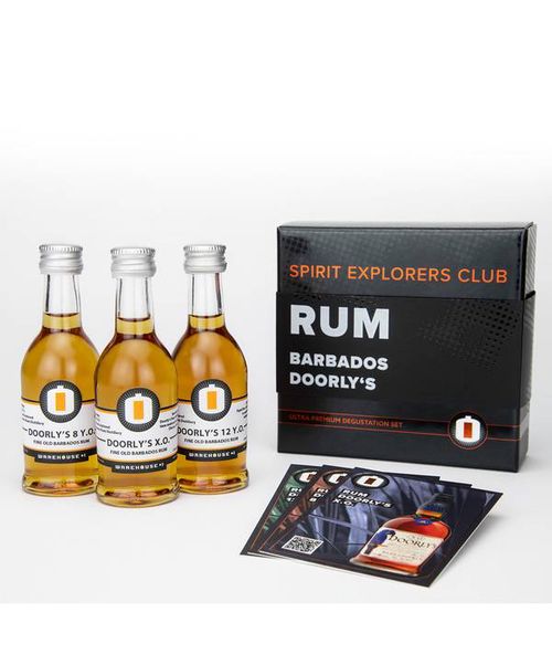 Poznejte rozmanitý svět rumů se sběratelskou edicí miniatur Spirit Explorers Club, kterou vám přináší Warehouse #1. Degustační set obsahuje 3 miniatury (3x 0,04 lit) barbadoských rumů značky Doorly's: Doorly's X.O. Doorly's 8 Y.O. Doorly's 12 Y.O. Ke každému z rumů je dodávána karta, která obsahuje detailní informace o jeho výrobě a chuťovém profilu. Vyrobeno jen limitované množství. Je možné objednat pouze 2ks/osoba. Výrobce: Dram Room
